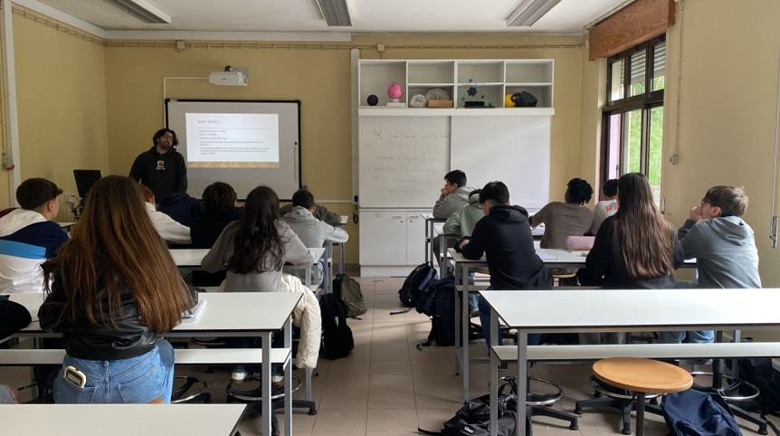 Ao longo da sua intervenção, o investigador apresentou o seu percurso académico e científico, aproximando os alunos da realidade do ensino superior e das diversas opções futuras. Explicou também o seu trabalho de investigação, nomeadamente o estudo desenvolvido na bacia do rio Cávado, que abrange concelhos como Barcelos, Braga, Esposende, Vila Verde, Amares e Terras de Bouro. Este estudo envolve a análise de vários fatores, como o declive do terreno, o caudal do rio e a densidade populacional, com o objetivo de avaliar e prevenir os impactos das inundações nas comunidades.